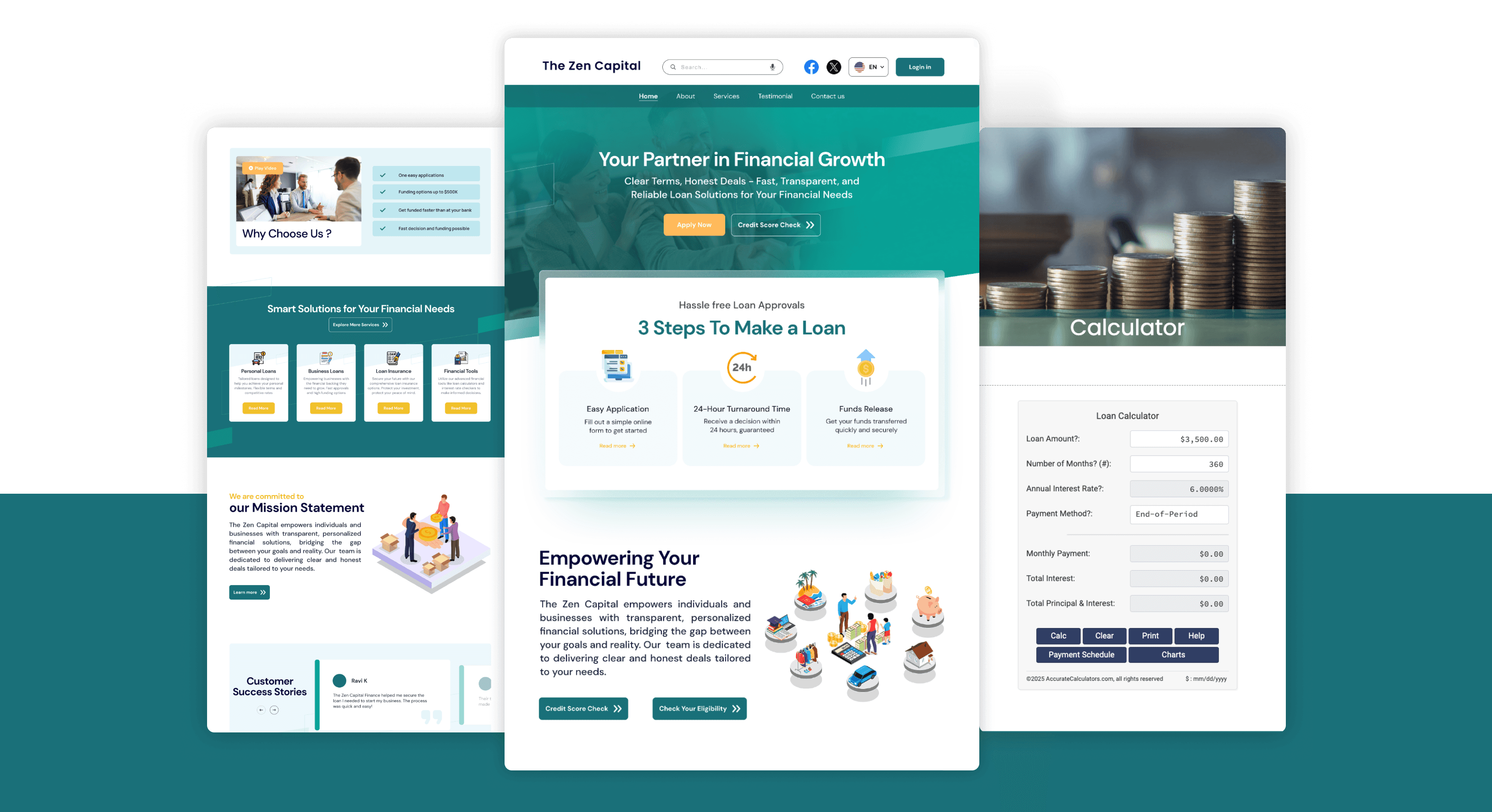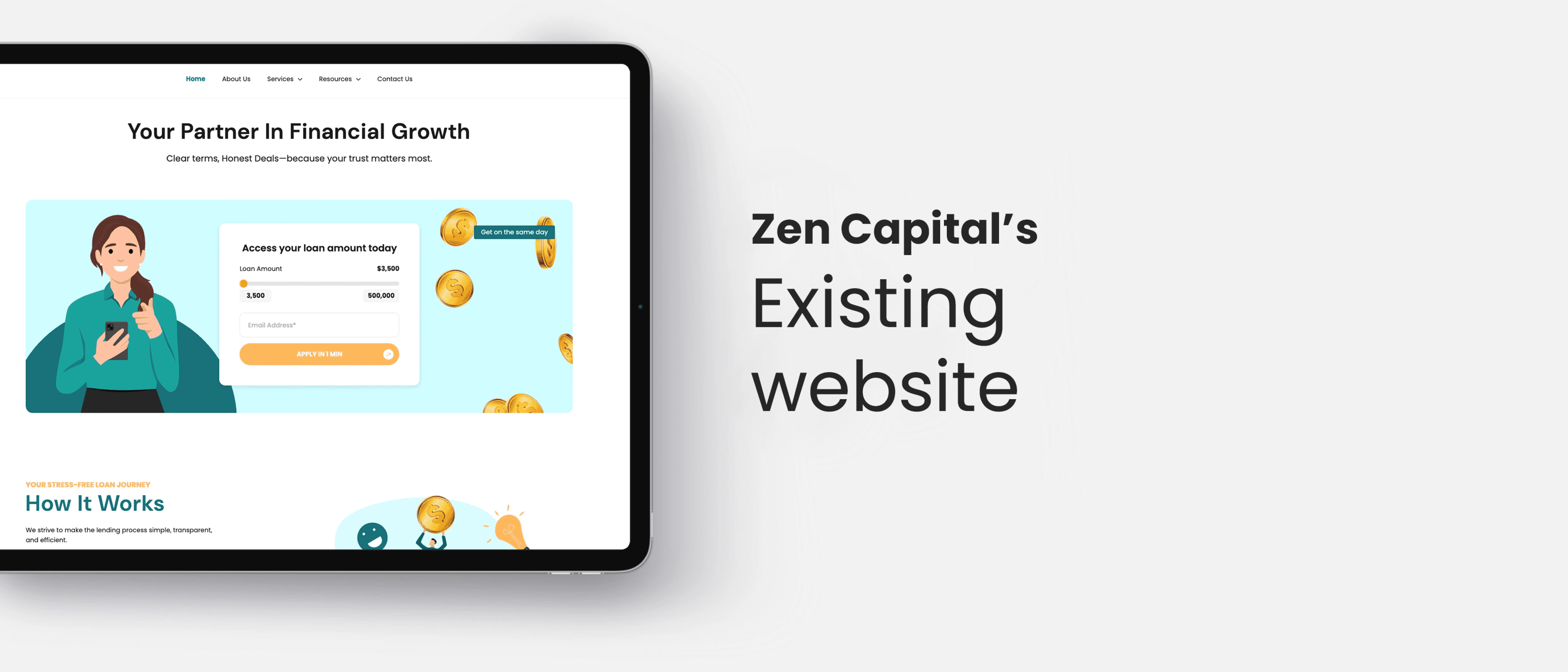 Zen Capital’s existing website struggled with multiple challenges. Visitors often found it difficult to understand the company’s financial offerings due to unclear messaging. The outdated design failed to inspire confidence, and inefficient navigation resulted in high bounce rates and low engagement. These issues hindered Zen Capital’s ability to connect with potential clients and showcase its expertise effectively.